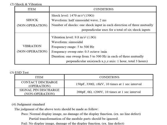 附上实验指标(此指标为三菱液晶屏实验标准):